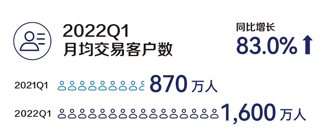 截至2022年3月31日,净新开门店556家,总门店数达6580家。本季度,瑞幸月均交易客户数为1600万,比2021年同期的870万增长了83.0%。