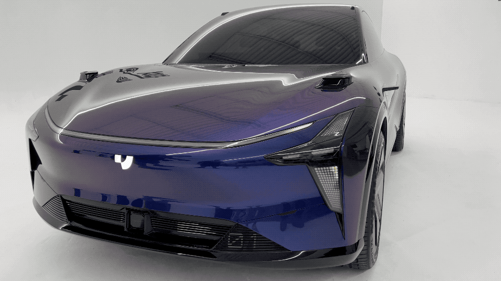 实拍车辆颜色为星河紫,车漆在不同角度光照下会呈现出从紫色到蓝色的渐变效果,再次彰显其科幻属性。