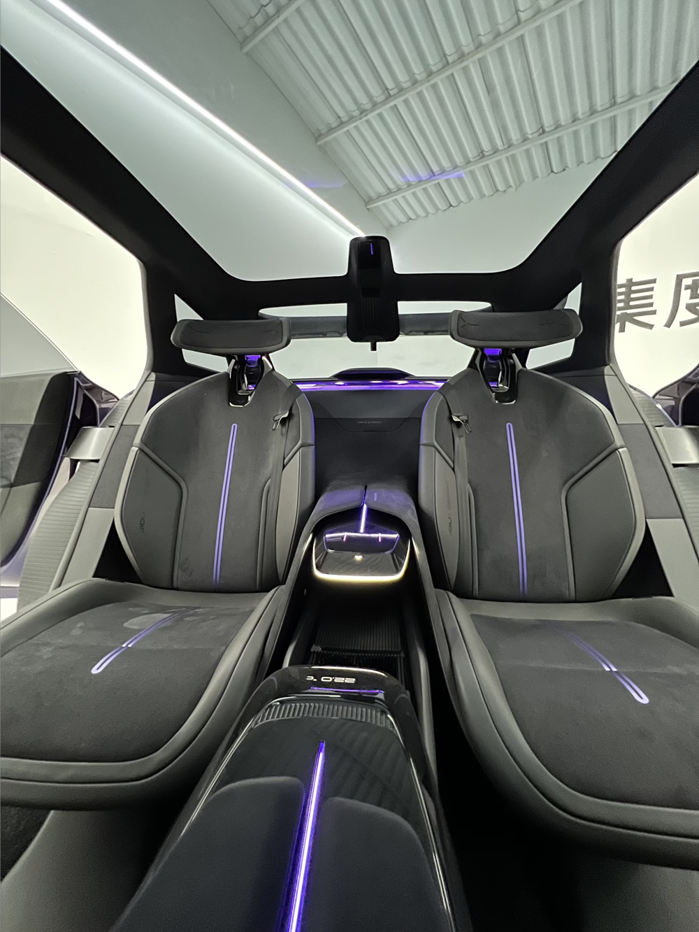 ROBO-01车内为四座设计,后排为两个独立座椅,椅型非常类似“返回舱”内的座椅,并且每个座位上的头枕都可以上下升降并配有头枕音响,保证每个座位上的乘客都拥有相同的出行体验。