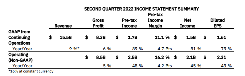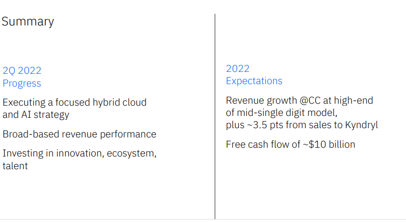 IBM首席执行官Arvind Krishna对于IBM分拆Kyndryl后的第二个完整季度业绩表示满意: