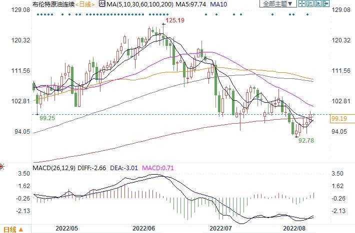 北京时间8月12日10:42 布伦特原油连续 报 99.19美元/桶