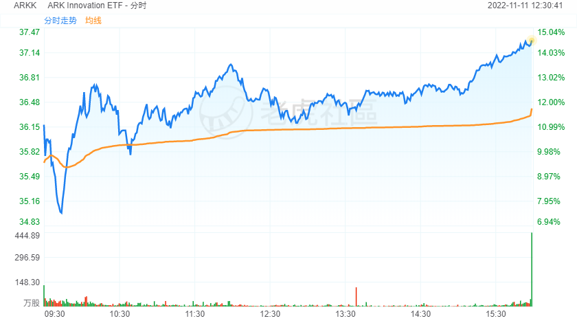 而木头姐凯西·伍德的旗舰基金ARKK更是惊人大涨超过14%,创下该基金推出以来最大日涨幅。