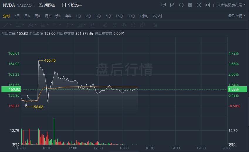 财报公布后,周三收跌逾4.5%的英伟达股价美股盘后迅速反弹,盘后涨幅一度超过3%。