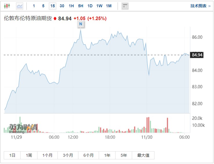Currie表示其对2023年的中期石油前景“非常乐观”,高盛将“坚持其立场”,对明年布伦特原油的预测为每桶110美元。截至发稿,布伦特原油涨1.25%,报84.94美元/桶。这意味着,和当前大约85美元每桶的价格相比,明年油价还有近30%的上涨空间。