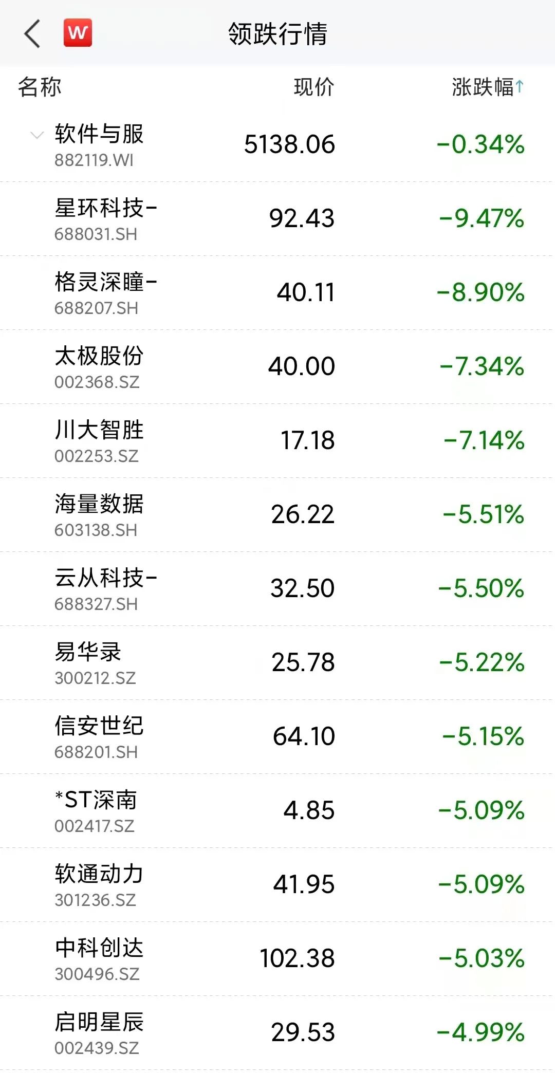 星环科技-U、格灵深瞳-U、太极股份、川大智胜、海量数据、云从科技-UW、易华录、信安世纪、软通动力、*ST深南、中科创达则跌幅居前。