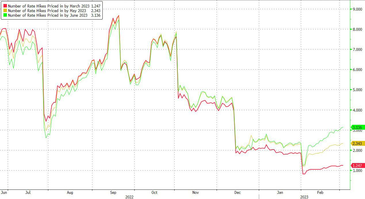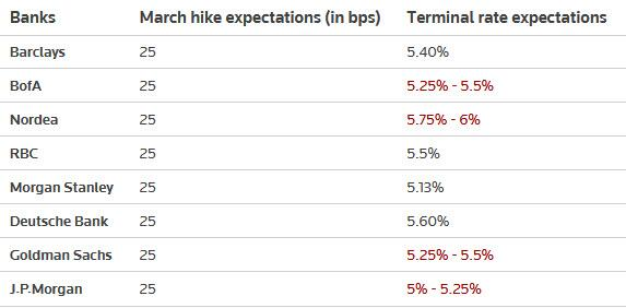 策略师指出,关键在于是市场可能会看到美联储在3月的会议上再次出现强硬态度,要么以加息50个基点的形式,要么以点阵图中更高的预期中值出现。
