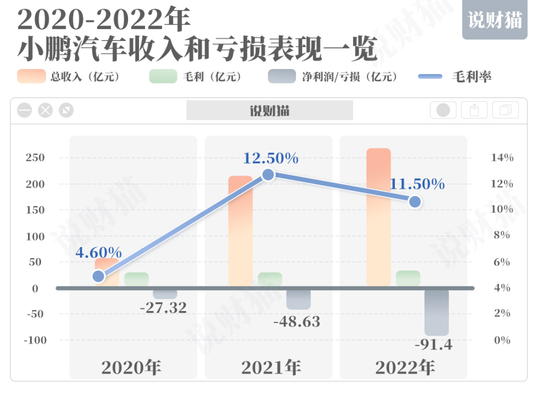 小鹏汽车去年毛利30.89亿元,毛利率降至11.5%,经营效益有所下滑。
