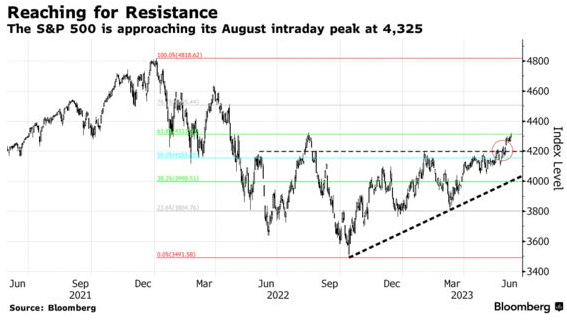 预计美联储将在本周暂停紧缩政策,这将是15个月来的首次。然而,风险在于,经济的弹性使通胀率居高不下,促使官员们最早在下个月再次加息,或者在更长时间内保持借贷成本高企。这可能会给对利率敏感的大型科技股带来压力,这些股一直是市场上涨的关键。