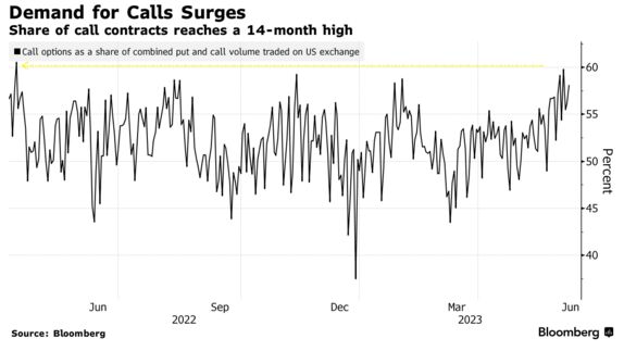 投资者正在买入看涨期权,因为他们准备迎接美联储的一项关键决定,该决定将决定2023年下半年股市的基调。