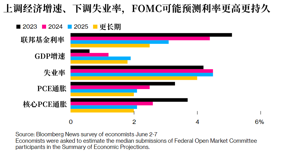 华尔街将关注经济预测摘要中的“点阵图”是否显示FOMC有再次加息的决心。当前美联储内部存在分歧,鸽派人士准备坚持3月份预测的5.1%峰值利率,而鹰派人士则希望最终利率达到5.4%或更高。接受外媒调查的经济学家预计,预测值中值将保持不变。