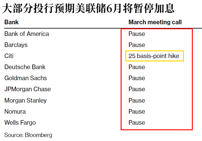 “6月惊吓”当然还是有可能的。虽然华尔街多数人认为美联储这次会议将暂停加息,但花旗集团的经济学家和华盛顿LH Meyer/货币政策分析公司(Monetary Policy Analytics)的经济学家预计美联储将在6月加息。Meyer公司强调,鲍威尔注重风险管理,警惕通胀上升和劳动力市场过热。