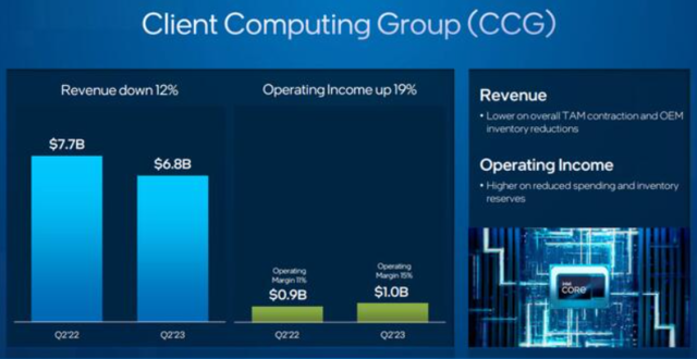 客户计算业务业绩:可用市场总量下降,原始设备制造商库存下降等因素导致营收下降,成本和库存费用下降推高经营利润