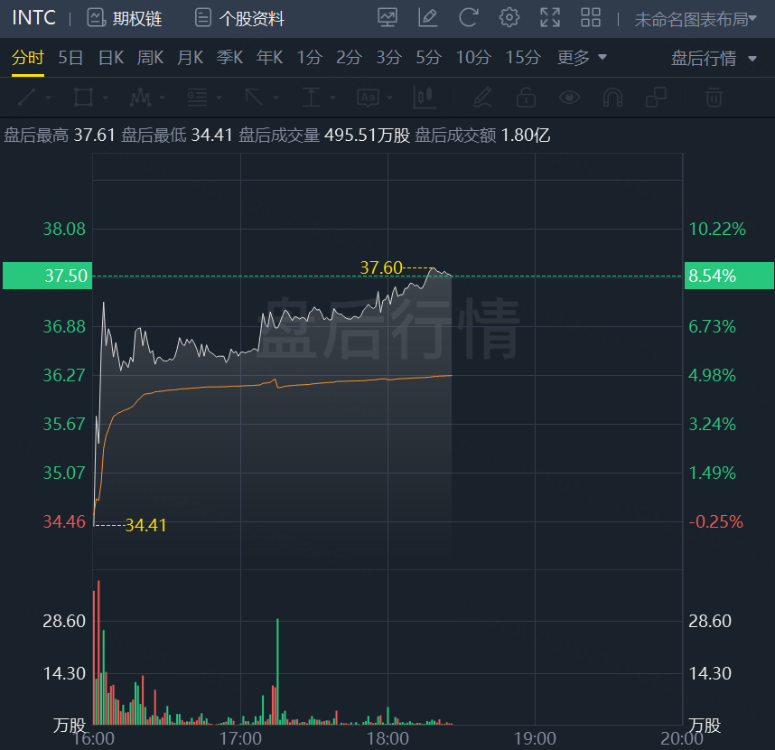 受公司二季度业绩和三季度指引超预期推动,周四美股盘后英特尔涨超8.5%。