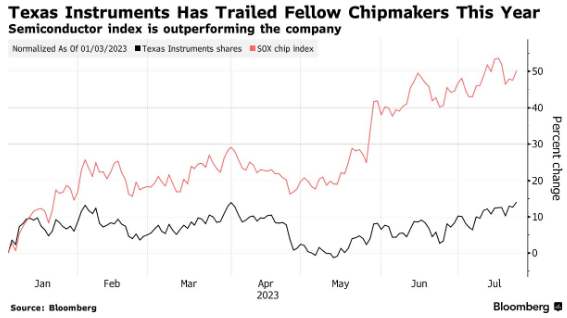 7月26日,德州仪器在最新公布的财报中表示,第三季度营收预计将在43.6亿美元至47.4亿美元之间。这一区间的中间值将低于分析师平均预期的45.9亿美元。该预期导致德州仪器股价在盘后交易中跌幅高达4%。该公司对三季度的营收预测不温不火,表明关键类型电子产品需求的低迷仍在持续。