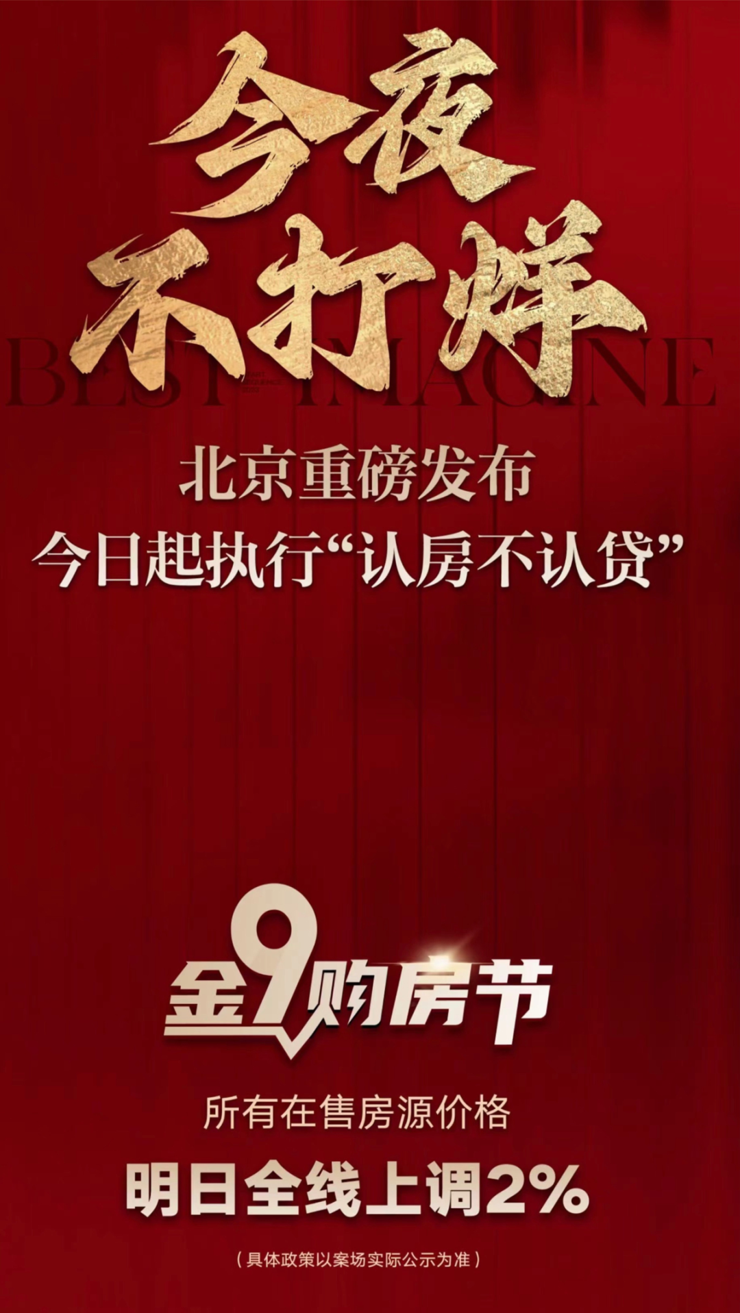 9月1日晚,北京于一线城市中最后官宣实施“认房不认贷”政策后,很快,位于通州区的招商璀璨公元项目就发布上述海报,宣布明日(9月2日)起上调价格。
