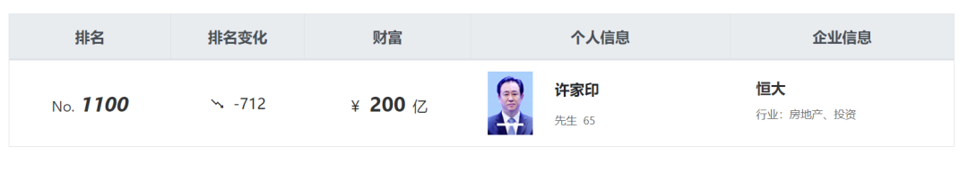《2023胡润全球富豪榜》显示,许家印如今身家仅剩200亿,全球排行1100名,比巅峰时缩水超过90%。
