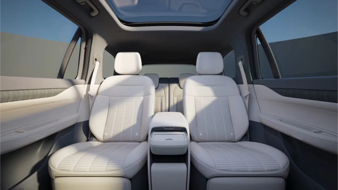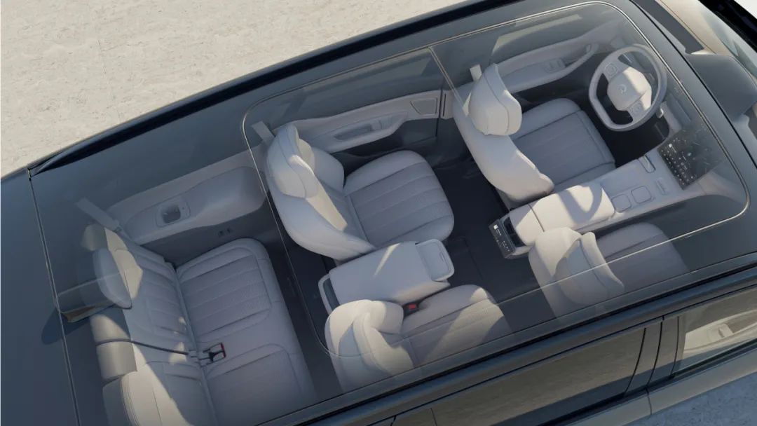主驾的科技层及舒适层错落有致,释放仪表台前端空间,车内有效空间3,402mm。全球独创女王副驾空间设计,将仪表台前移,对比主驾增加多达53%灵活空间,打造副驾宽适体验。二排座椅纵向长度超过2,378mm,两个独立座椅的坐垫宽度达550mm,搭配近1,600mm的车内横向宽度,让坐在后排的家人也可以舒适伸展,真正做到六座皆C位。