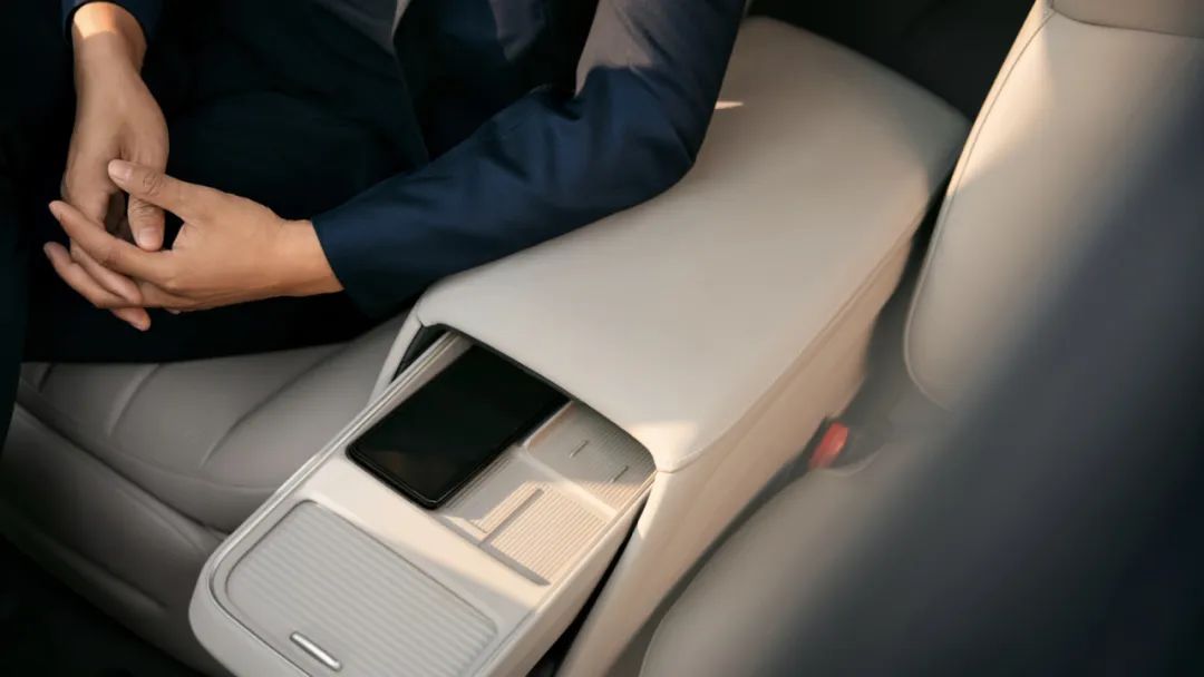 上层为数字层,布置了两个纵向40W无线风冷快充,以及一个前端横置专属NIO PHONE的40W无线风冷充电位,让二排从容的面对多重充电需求。如果你想要享受一场不被打扰的午睡,也可轻按轻按电动开关,数字层即可自动收回,从而不被屏幕唤醒所打扰。