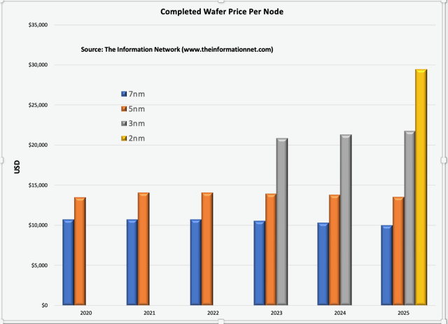 表1显示了台积电截至2023年1月的价格结构,根据信息网络的报告《全球半导体设备:市场、市场份额和市场预测》。