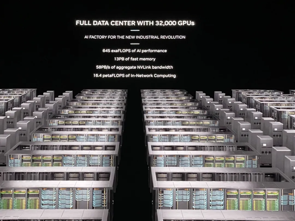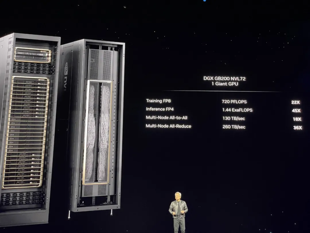 黄仁勋说,这是世界上第一台单机架EFLOPS级机器,整个地球也不过两三台E级机器。