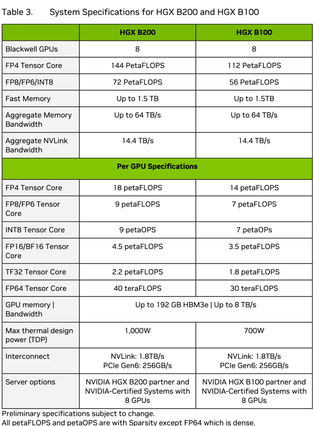 ▲HGX B200和HGX B100系统规格(图源:Blackwell架构技术简报)