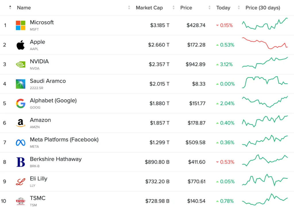 ▲全球市值TOP10中,英伟达过去30天股价涨幅最大(图源:Companies Market Cap)