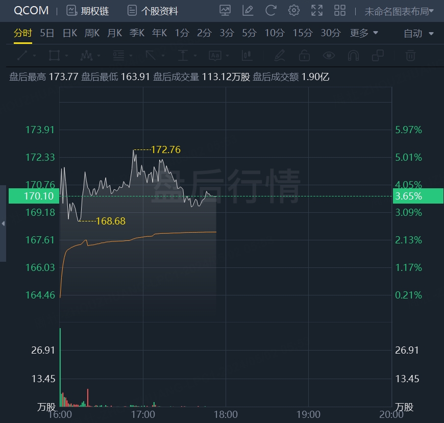 高通预计自然年二季度的销售额在88亿至96亿美元,区间中点高于华尔街预期的90.8亿美元,或代表同比增长显著提速至近9%。公司预计下季的EPS为每股收益2.15至2.35美元,也高于市场预期的2.16美元,再结合好于预期的一季报,均有助于推动盘后股价上涨。