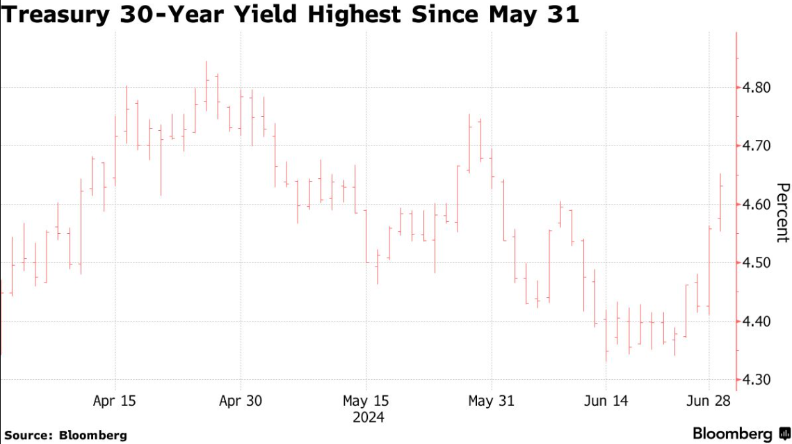 美债吓崩了,美债收益率大幅飙升,这一现象是市场押注共和党大获全胜的直接反应。