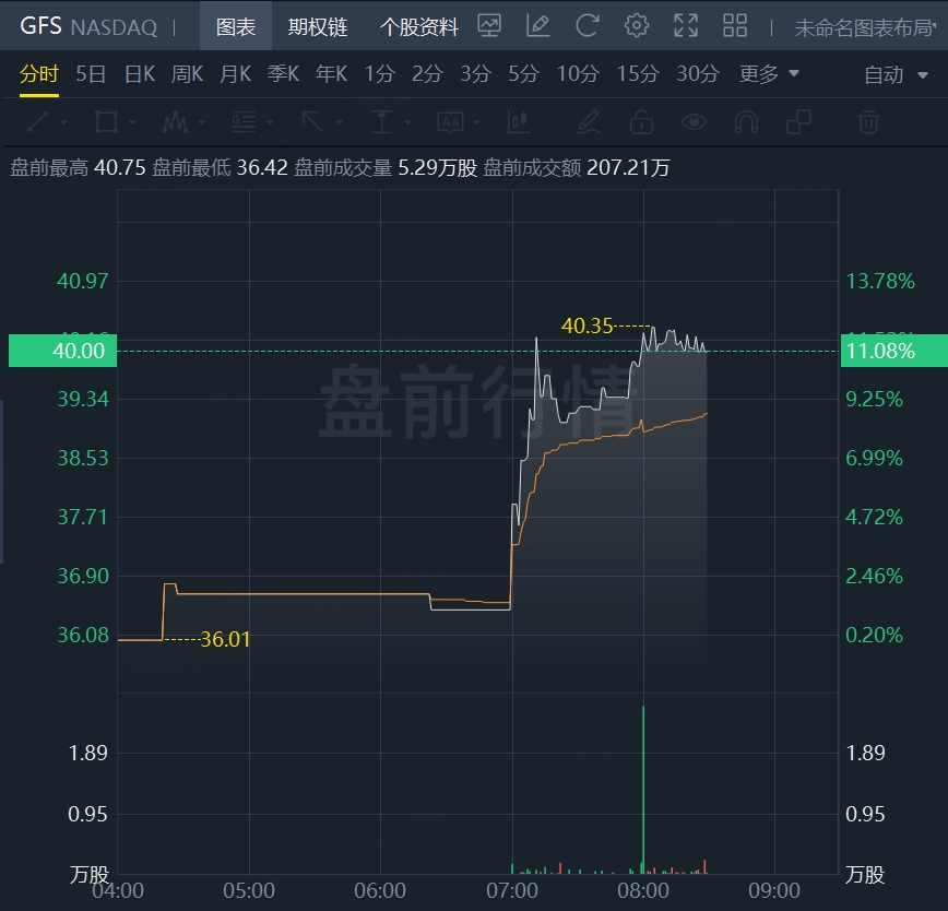 11月5日,格芯于美东时间11月5日盘前发布第三季度财报。数据显示,该公司Q3收入同比下降5.9%至17.39亿美元,超出市场普遍预期的17.2亿美元,Non-GAAP每股收益为0.41美元,超出市场普遍预期的0.33美元。此外,该公司还提供了乐观的业绩前景,周二股价盘前飙升超12%,截至发稿,盘前大涨11%。