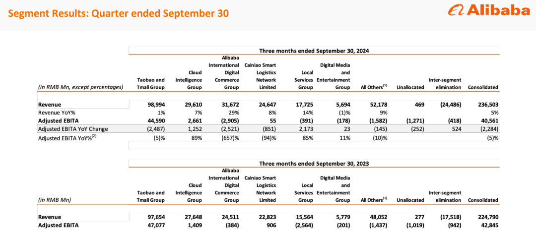 细分来看,最核心的淘天业务,线上 GMV 增长带动客户管理收入同比增长了 2.5%,88 VIP 用户数同比实现双位数增长,达到 4600 万人。利润方面,对商家和用户让利,经调整 EBITA 下降了 5.3% 。