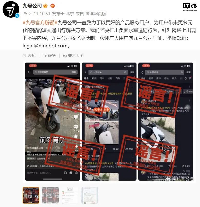 【九号电动车公司回应网传“九号断头”:坚决打击负面水军造谣行为】电动车企业九号公司2月11日在微博发文,针对网传“九号断头”信息进行了回应。九号公司表示,坚决打击负面水军造谣行为,针对网络上出现的不实内容,九号公司将坚决抵制。(同花顺)