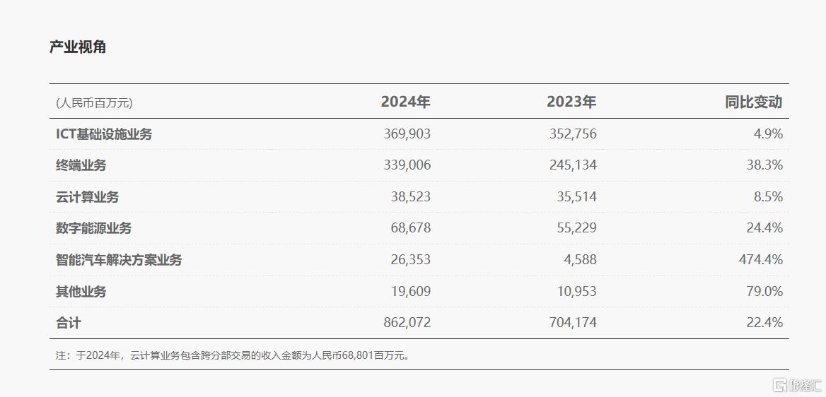 ICT基础设施业务营收3699.03亿元,同比增长4.9%。