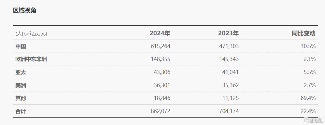 分区域来看,华为在中国市场实现销售收入6152.64亿元,同比增长30.5%。