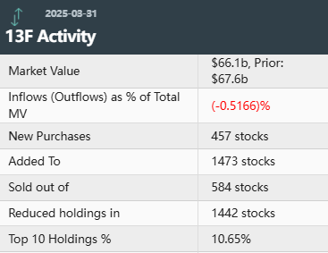 Robinhood(HOOD.US)位列第四,持仓约1666万股,持仓市值约6.93亿美元,占投资组合比例为1.05%,持仓数量较上季度大幅增加37.91%。