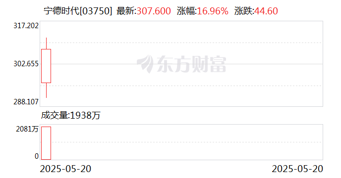 5月20日,宁德时代在香港联交所主板挂牌上市,成为“A+H”股上市公司。截至10:32,宁德时代H股上市首日涨幅超13%。