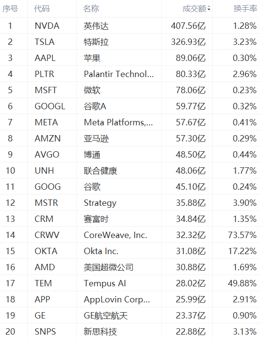 第4名Palantir收高0.30%,成交80.33亿美元。根据美国证券交易委员会(SEC)最新文件披露,Palantir Technologies公司CEO亚历克斯-卡普(Alex Karp)上周出售了价值逾5000万美元的公司股票。
