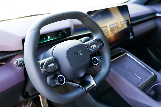 来到车内,在座舱方面,全新小鹏P7采用智能灵动仿生座舱。何小鹏表示,全新小鹏P7座舱为驾驶而生,因此搭配了全新运动方向盘,拥有卫星驾控旋钮,同时加入了车内小蓝灯,打开智驾的时候,双按钮灯效会自动变蓝。