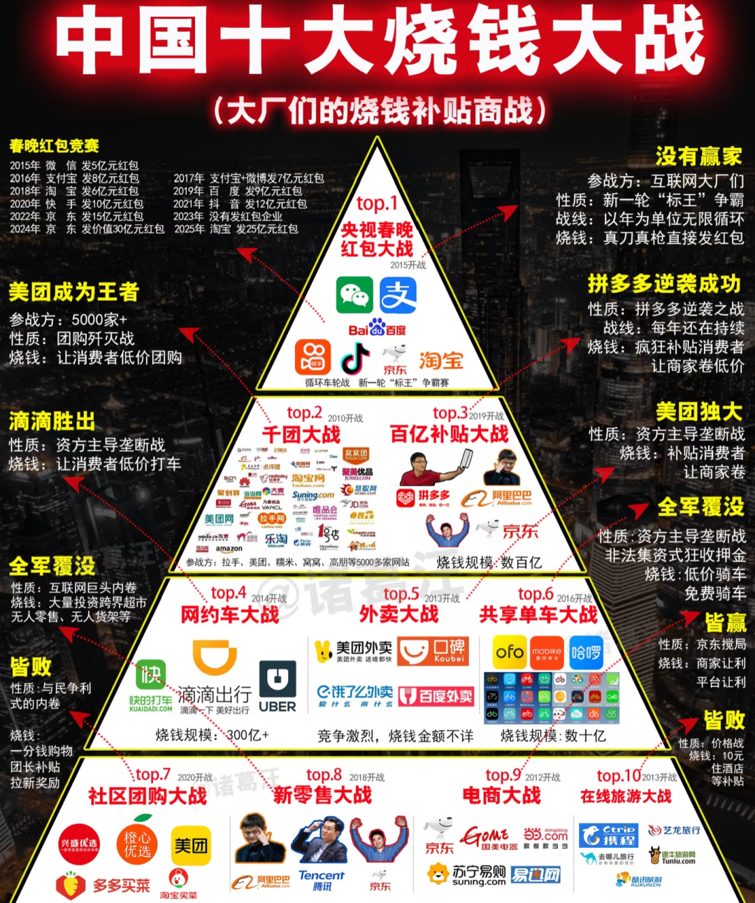 有一说一,过去十几年里,这些互联网平台之间的抢钱大战一直没停过,