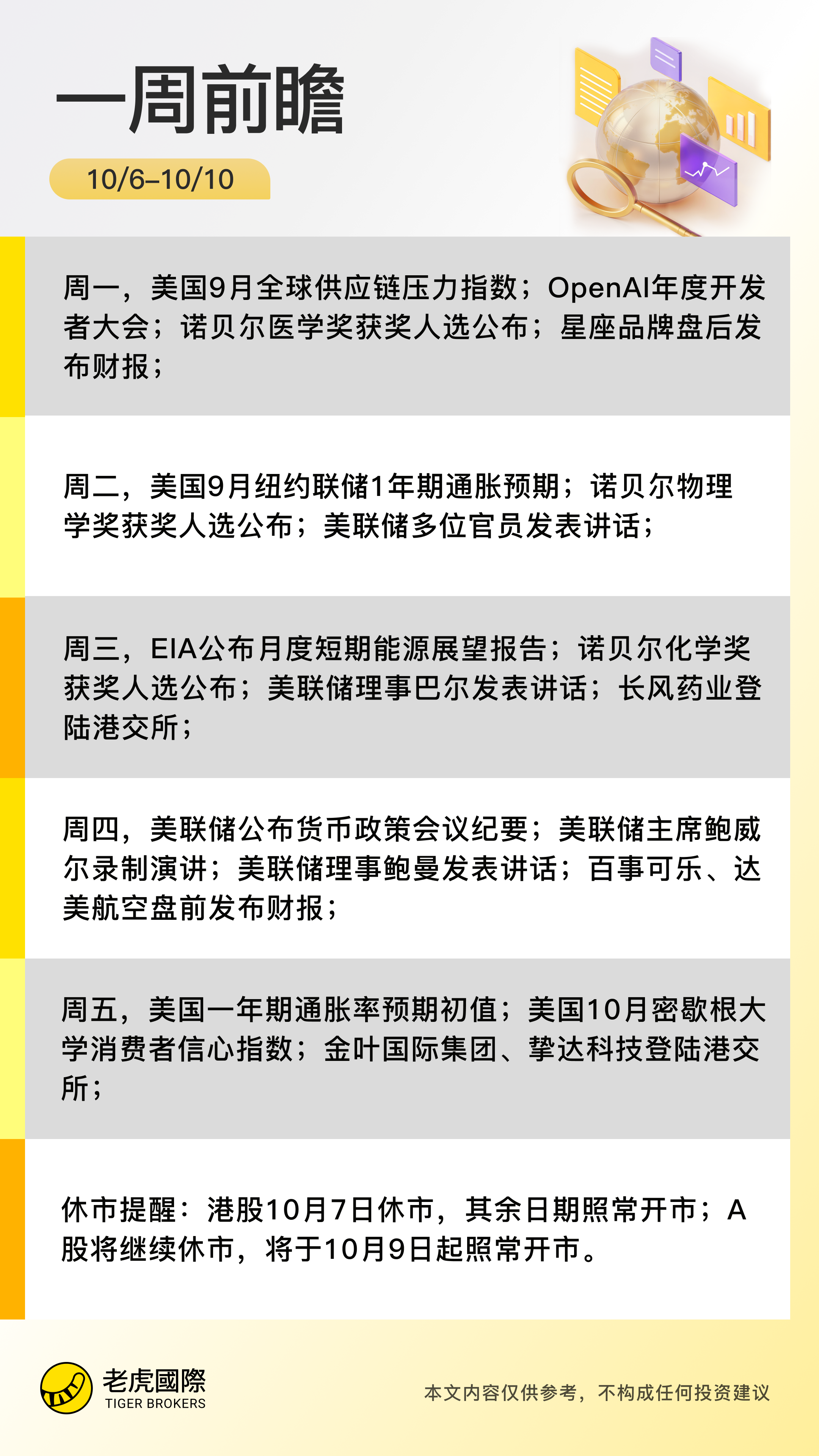 财经事件:美联储货币政策会议纪要;鲍威尔携多位高官发表讲话;OpenAI年度开发者大会;诺贝尔奖项陆续揭晓;