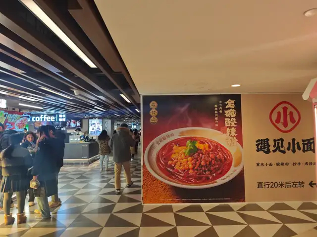 一进世贸天阶负一层,遇见小面的一整张大海报及门店指引就映入眼帘。