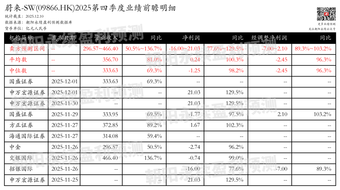 截至2025年12月10日,根据朝阳永续季度业绩前瞻数据: