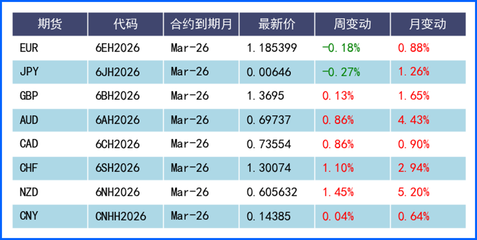 回顾上周,美元延续下跌,但在特朗普正式提名前美联储理事凯文·沃什为下任美联储主席后V形反转,周线长下影收盘。非美货币方面,英镑、欧元相对强势。英镑兑美元触及四年高位,欧元兑美元则维持高位震荡;日元则由于日本政府汇市干预而宽幅波动。展望本周,财经事件方面,加拿大央行将公布利率决议,经济数据方面,英国及欧元区的PMI数据即将公布,美国的1月非农就业数据也将发布,值得投资者重点关注。