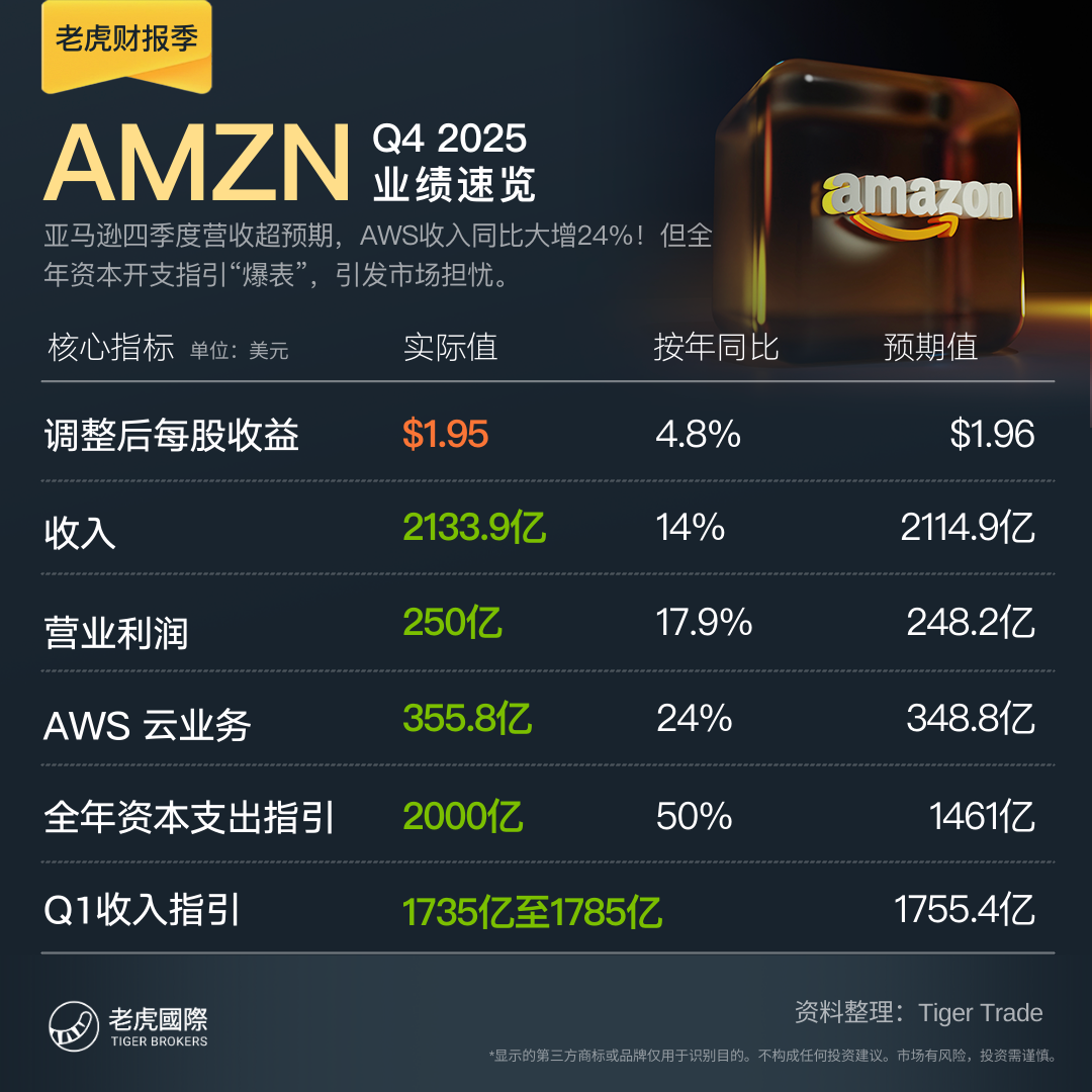 在刚刚结束的2025年第四季度财报电话会上,尽管亚马逊AWS跑出了三年最快增速,但市场被一个数字吓懵了——2026年预计约2000亿美元的资本开支。这个数字不仅比分析师预期的这一水平高出近40%,更是超过了谷歌刚刚宣布的1850亿美元上限。
