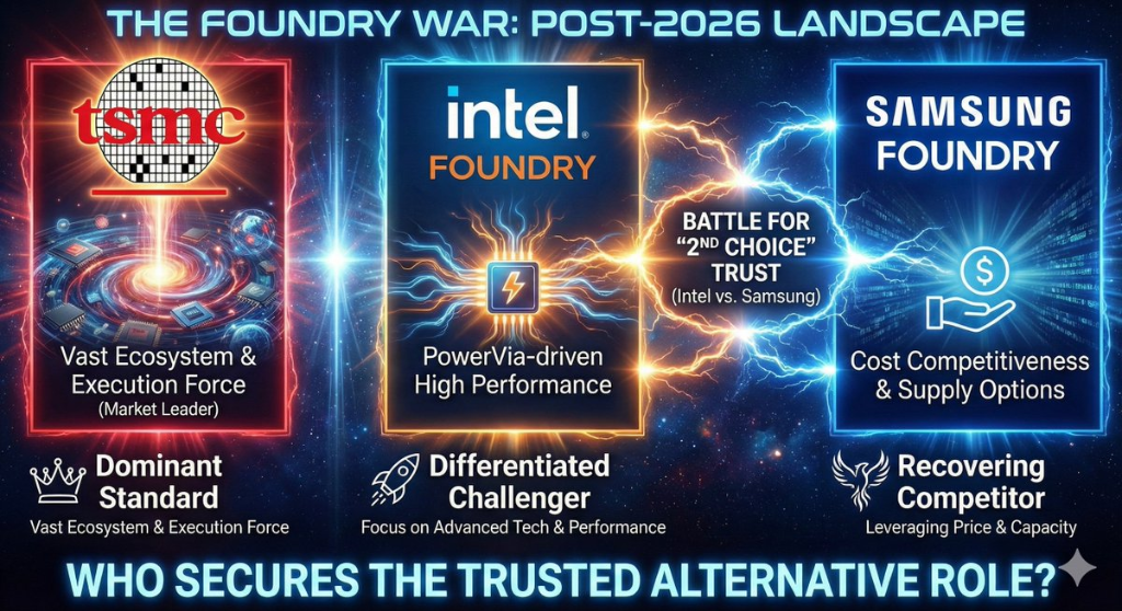 英特尔面临的时间窗口正在关闭。随着台积电亚利桑那工厂和三星泰勒工厂的产能释放,英特尔目前享有的“美国本土制造”地缘溢价将被稀释。如果不能在2026年至2027年间证明其良率的稳定性和生态的成熟度,主要客户将可能继续锁定台积电,或转向复苏的三星。