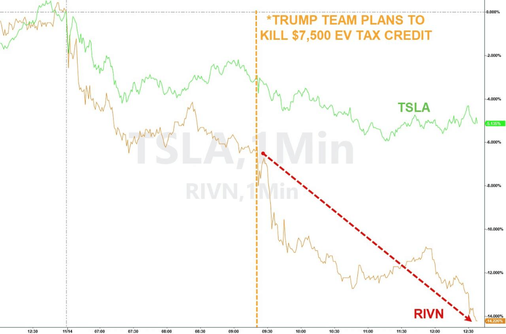 受该消息影响,电动车股集体大跌,Nikola收跌22.76%,极氪ADR收跌23.68%, “特斯拉劲敌”Rivian收跌14.3%,特斯拉收跌5.77%。