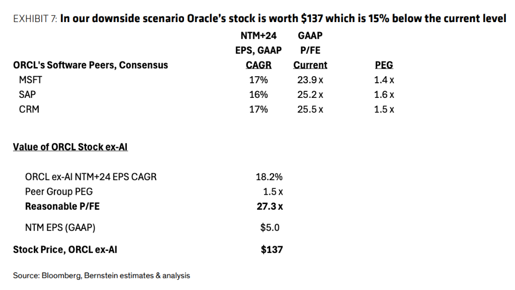 与此同时,伯恩斯坦在极端情景压力测试中显示,即便AI业务完全归零,甲骨文股价下行空间也仅约15%。在当前市场对客户集中度与资本支出风险持续担忧的背景下,压力测试结果为投资者提供了清晰的估值锚点。