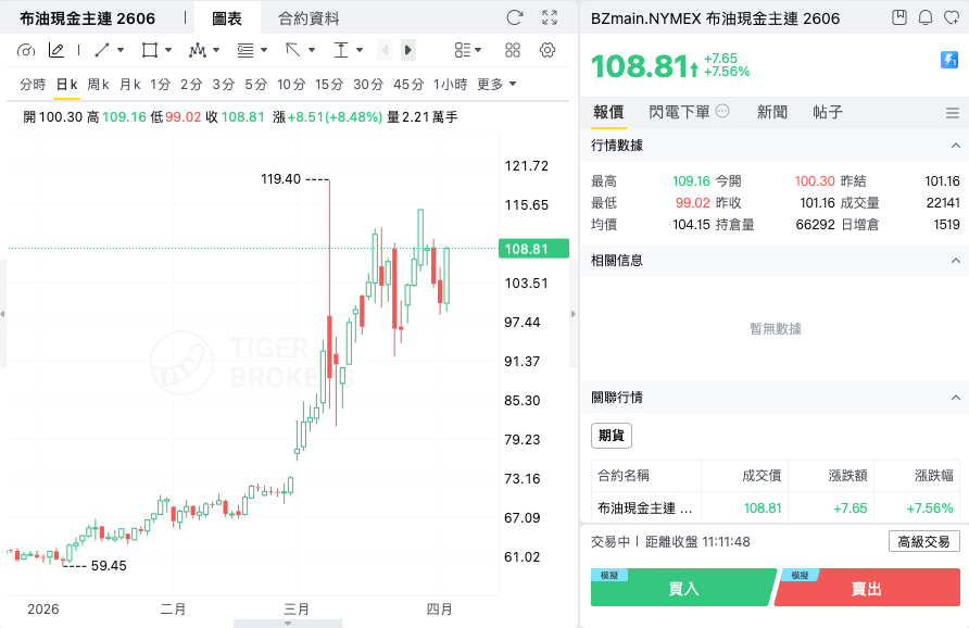 特朗普讲话后,布伦特原油期货应声上涨约7%,一度触及每桶108美元,美股期货下跌超1%,欧股跌幅超2%,亚太主要股指几乎全线飘绿。