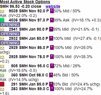 从期权的未平合约数角度来说,SMH有非常大的看跌期权在徘徊,今天下午更是有非常多的买家: