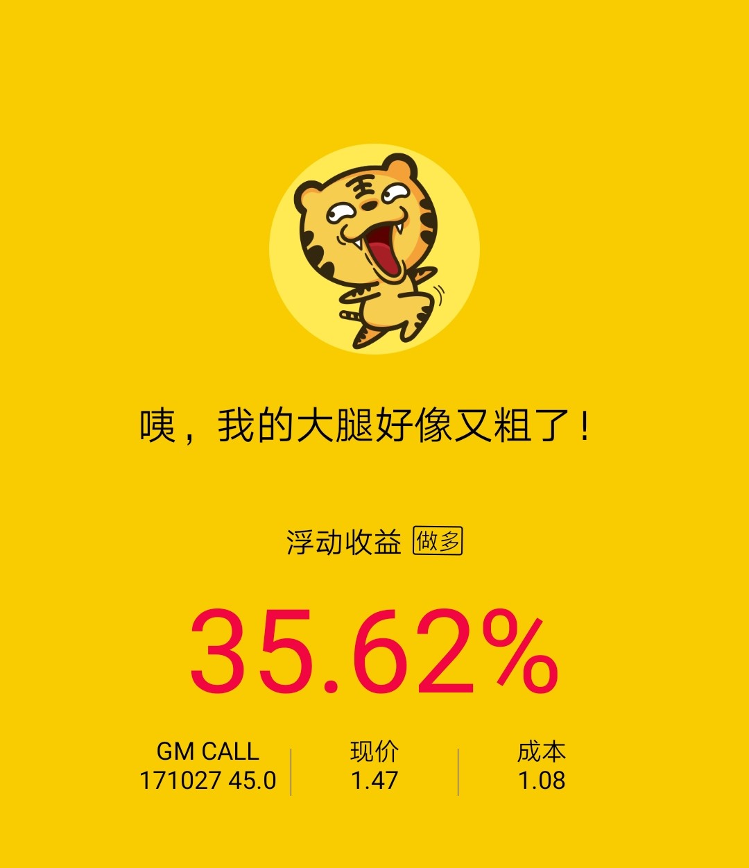 $GM 20171027 45.0 CALL(GM)$ 还好没被振出去,准备拿到行权了