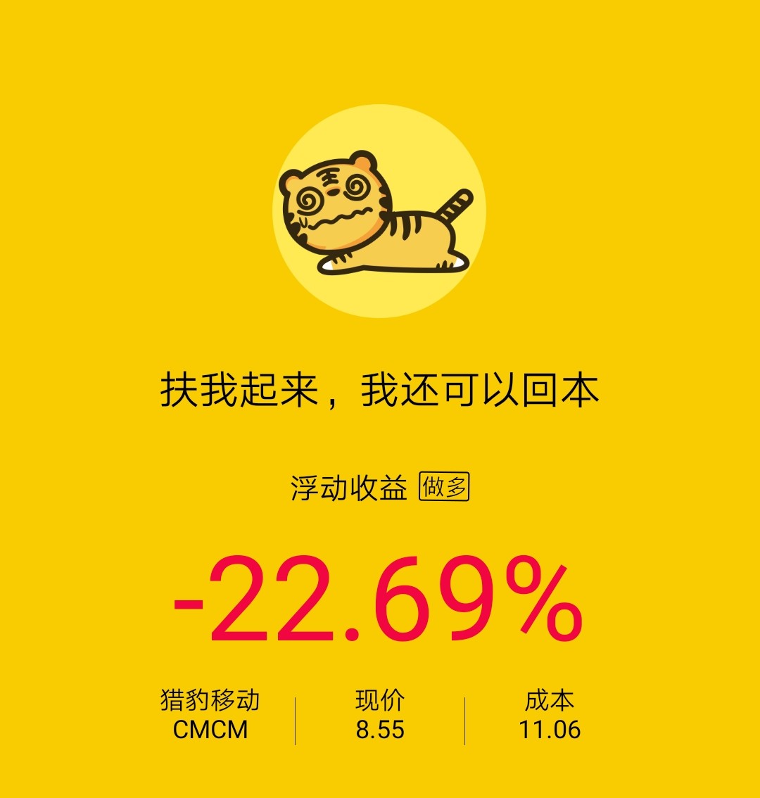 $猎豹移动(CMCM)$ 补仓4次,投入资金已经为当初的5倍,现在是30%的仓位,是我的第一重仓,坚定不移。相信会有6倍回报,如果有机会准备再加2倍的仓位,全仓干!